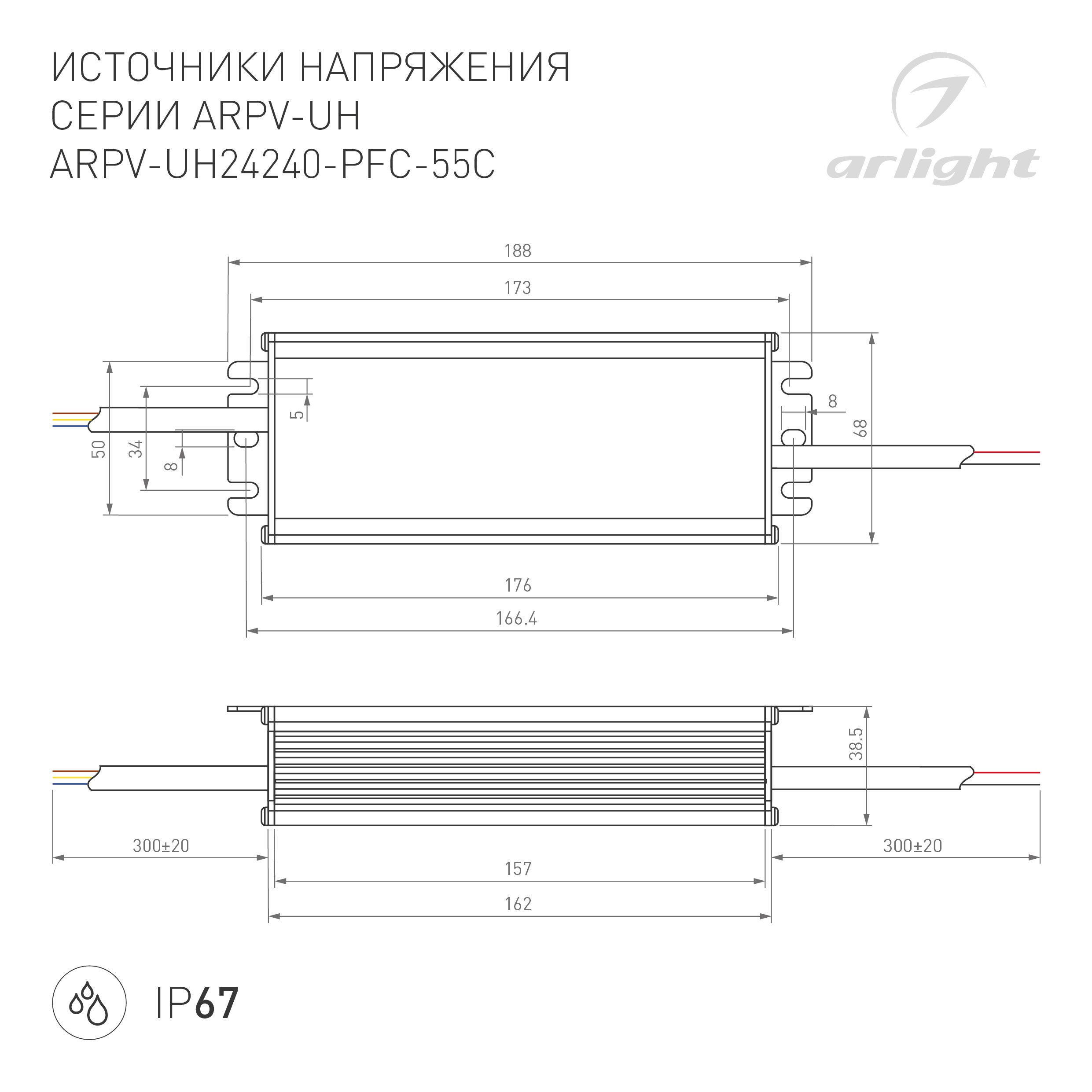 Источник напряжения с гальванической развязкой для светодиодных изделий. Предназначен для работы в условиях Крайнего Севера с запуском до -55С. Входное напряжение 120-240 VAC. Выходные параметры: 24 В, 10 А, 240 Вт. Встроенный PFC >0,95. Герметичный алюминиевый корпус IP 67. Рабочая температура -55…+60C⁰. Габаритные размеры длина 188 мм, ширина 67.5 мм, высота 38.5 мм. Гарантийный срок 5 лет.