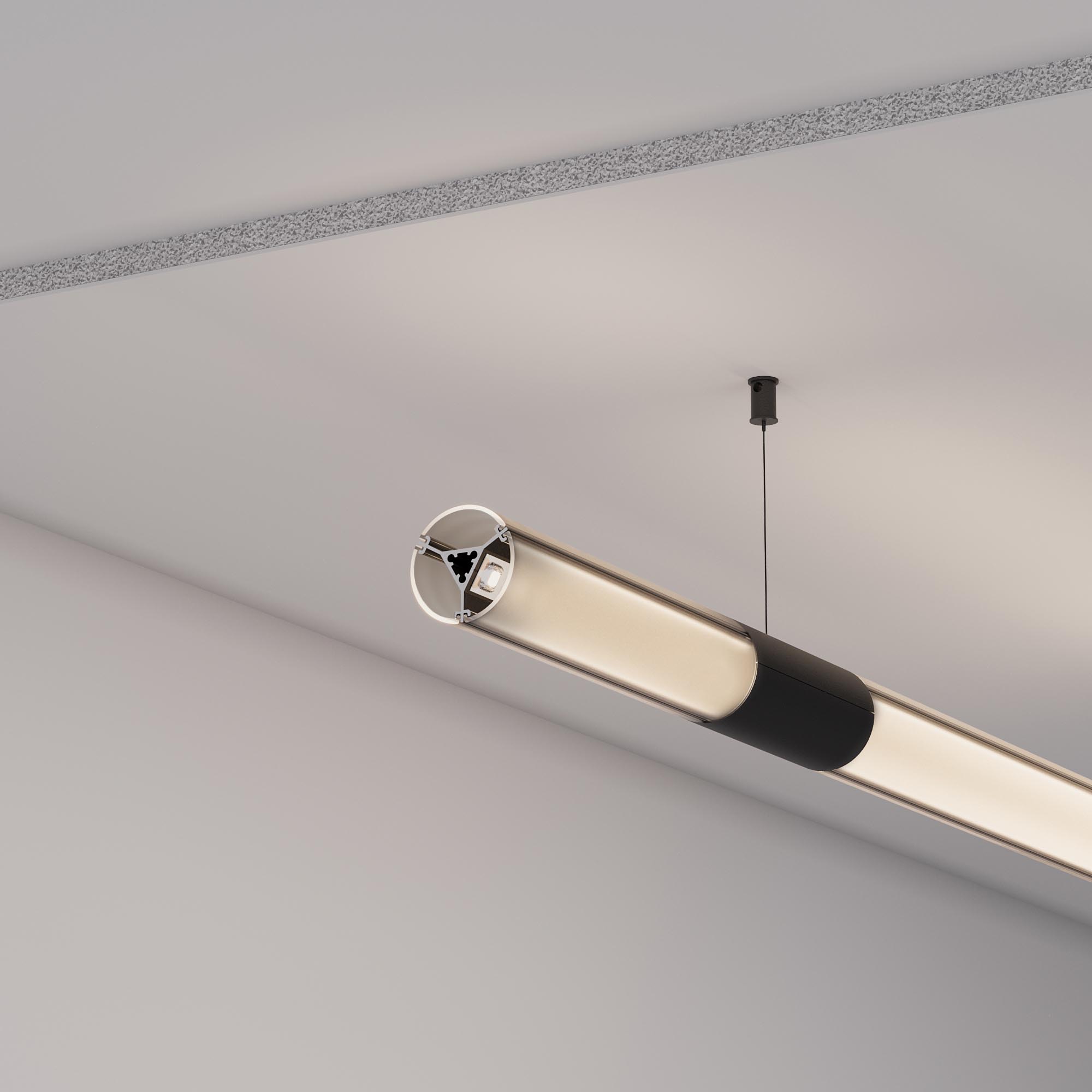 Матовый полукруглый рассеиватель черного цвета из поликарбоната со светопропусканием 30% предназначен для использования с профилем ROUND-D36-360 (для одного профиля требуется три рассеивателя). Он эффективно равномерно рассеивает свет, размывая точки светодиодов на поверхности. Этот элемент придает завершенный внешний вид светильнику, а также обеспечивает надежную защиту светодиодной ленты от воздействия внешних факторов, таких как грязь и пыль.