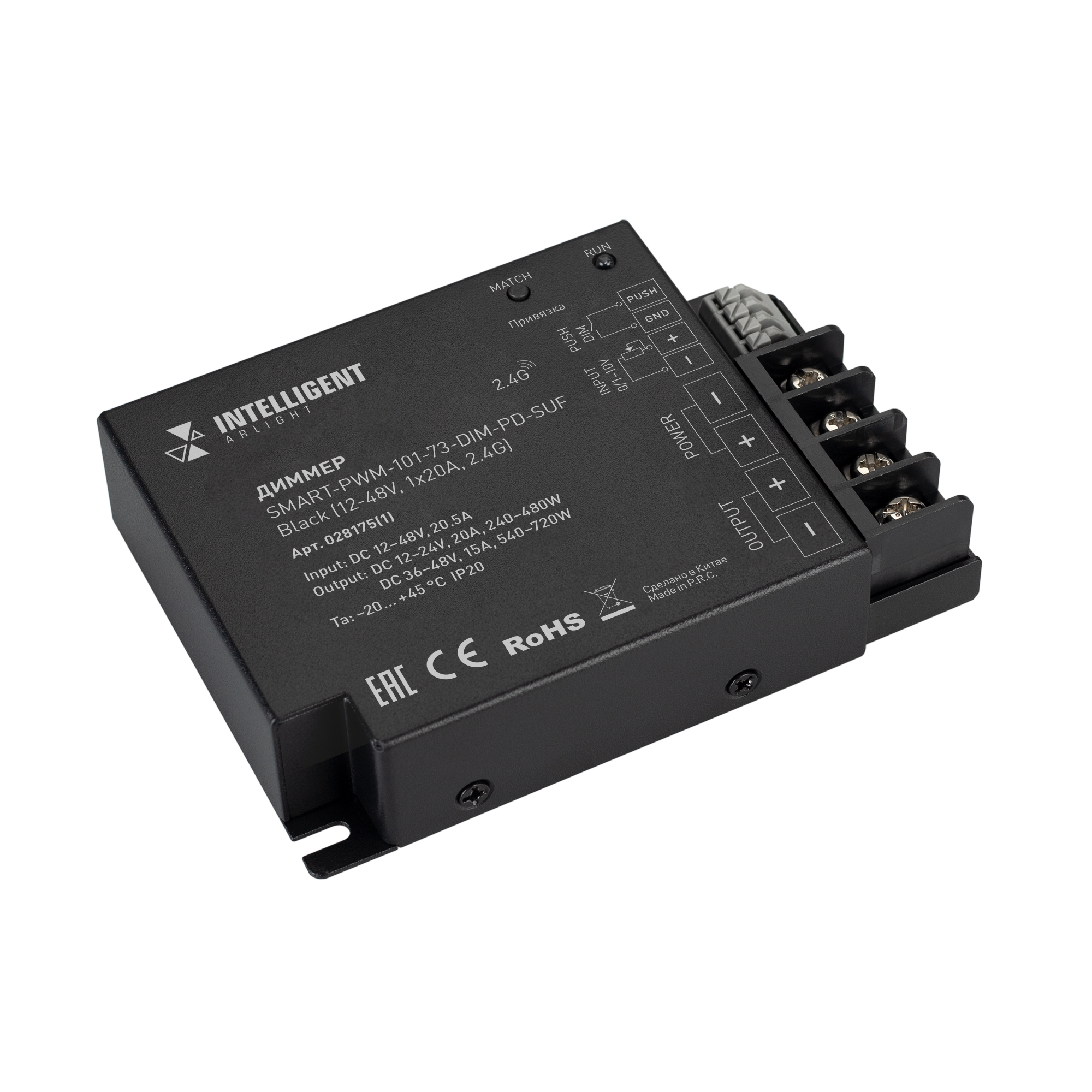INTELLIGENT ARLIGHT Диммер SMART-PWM-101-73-DIM-PD-SUF Black (12-48V, 1x20A, 2.4G) (IARL, IP20 Металл, 5 лет) 028175(1) в Владивостоке
