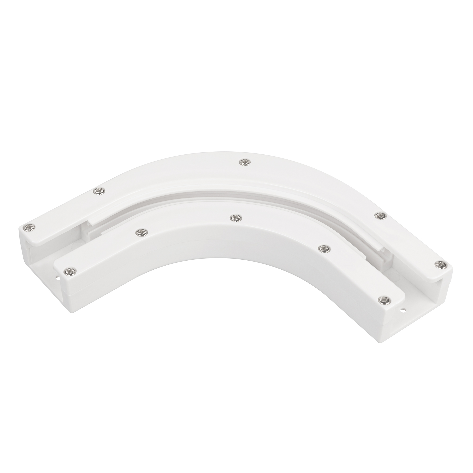 Пластиковый белый уголок для карниза позволяет реализовать решение без изгиба профиля. Совместим с комплектами электрокарниза серии CNK.