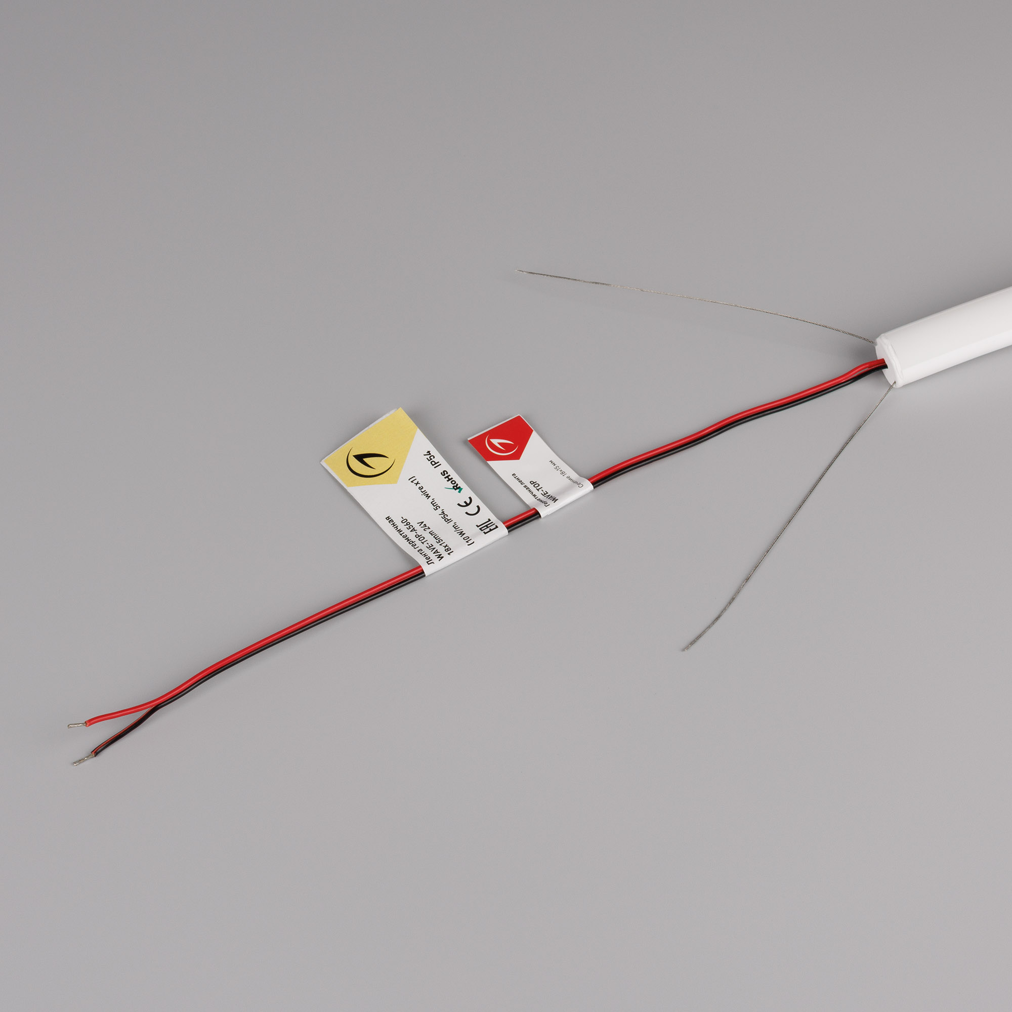 Гибкая герметичная лента (неон серии WAVE), сечение 18×15 мм с тросом-натяжителем. Светодиоды SMD2835 560 шт/м. Цвет свечения ТЕПЛЫЙ БЕЛЫЙ (3000 К), индекс цветопередачи CRI>90, световой поток 466 лм/м, угол излучения 360°. Мощность 10 Вт/м, питание 24 В. Класс пылевлагозащиты IP54. Размеры 5000×18×15 мм. Мин. отрезок 25 мм. Изгиб согласно метки на корпусе, минимальный радиус изгиба 150 мм. Кабель питания длиной 500 мм, вывод с одной стороны вдоль линии сечения неона. Катушка 5 м. Цена за 1 м. Гарантия 3 года.
