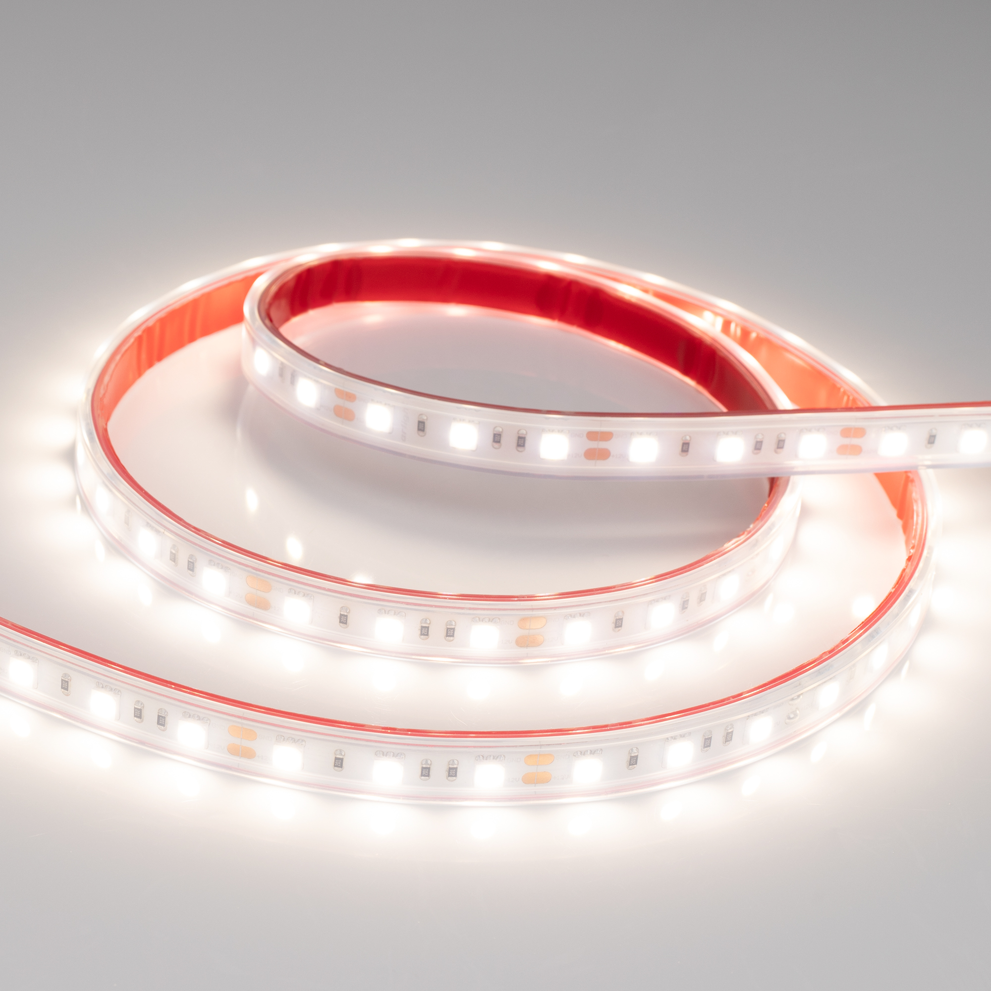 Герметичная светодиодная лента LUX шириной 13 мм в силиконовой трубке с высокой степенью пылевлагозащиты IP66. Светодиоды SMD 5060 (60 шт/м) с дневным белым цветом свечения (3800–4200 К). Мощность 14.4 Вт/м, напряжение питания 12 В. Минимальный отрезок 50 мм (3 светодиода). Освещение интерьеров и создание декоративной подсветки, оформление наружной рекламы и витрин. Возможно использование во влажных помещениях.