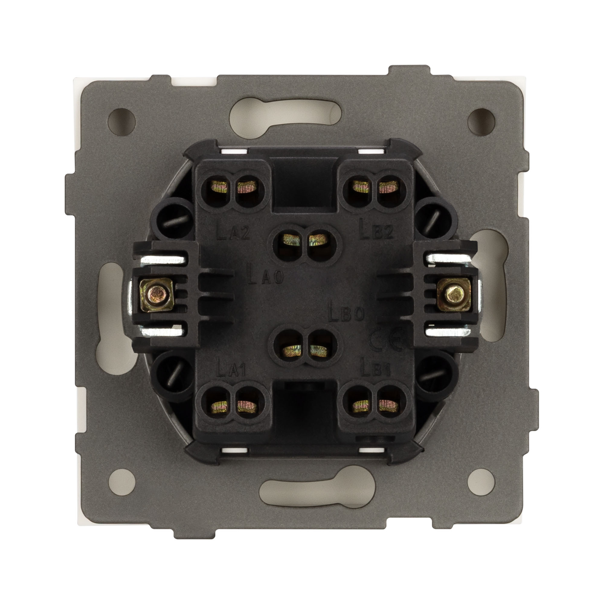 Механизм выключателя света совместим с рамками серии TENDO, создает утонченный минималистичный вид. Скрытый тип монтажа позволяет гармонично встроить в интерьер любого современного дизайн-проекта. Видимая часть механизма выполнена из высококачественного пластика белого цвета и имеет матовое покрытие. Контактная часть присоединяется при помощи винтовых зажимов, позволяя надежно подсоединить механизм выключателя к питающим элементам. А усиленные распорные лапки двойного захвата надежно фиксируют механизм в установочном подрозетнике круглого сечения диаметром 60мм. Суппорт окрашен порошковой краской и выполнен из металла толщиной 1,5мм, что обеспечивает безопасность и уверенность в установке. На каждой стороне суппорта размещены фиксирующие элементы, позволяющие комбинировать механизмы в системы до 5 шт как горизонтально, так и вертикально.