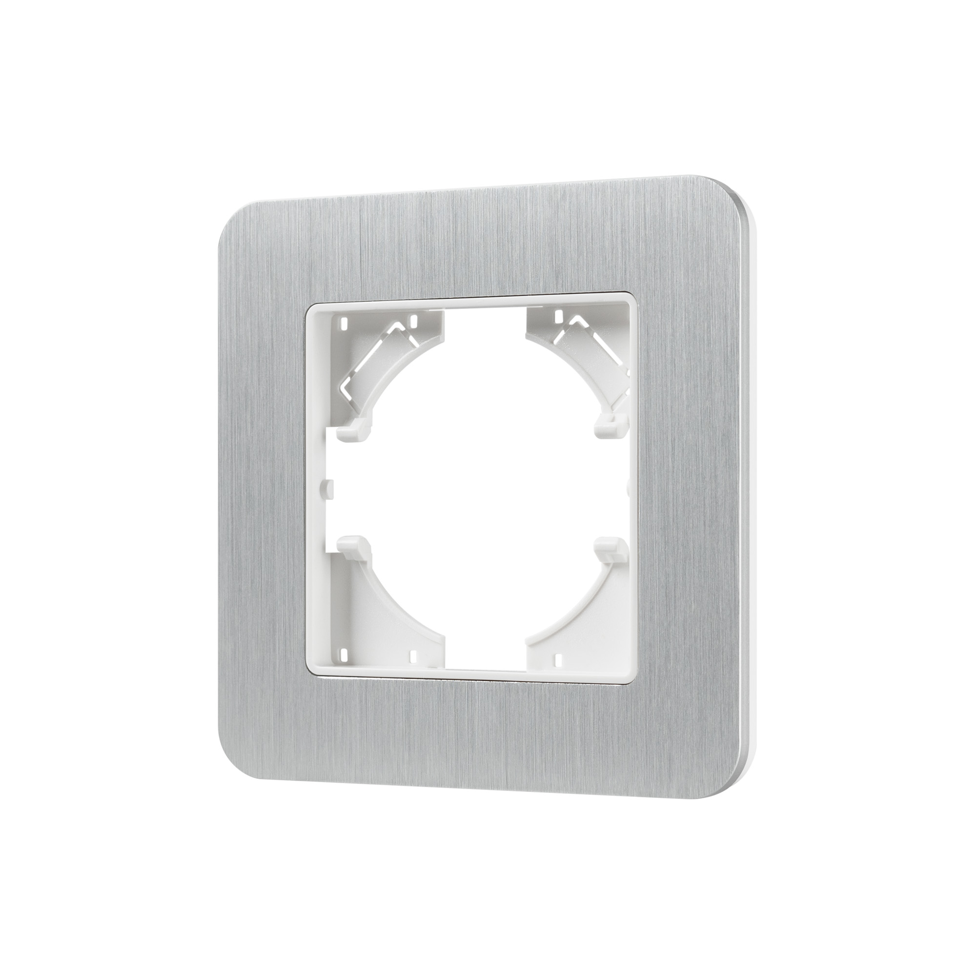 Рамка алюминиевая на 1 пост, под встраиваемый механизм. Цвет - серебристый. Среднего уровня герметичности IP20. Ориентация монтажа - горизонтальная (основным ориентиром служат посадочные выступы для накладки механизма).