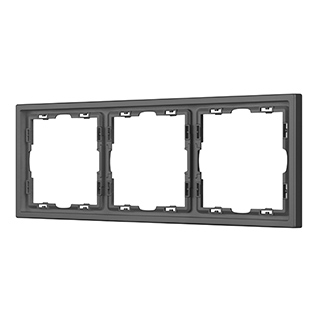 Рамка пластиковая на 3 поста, под встраиваемый механизм. Цвет - серый, с Soft-Touch покрытием. Среднего уровня герметичности IP20. Ориентация монтажа горизонтальная.