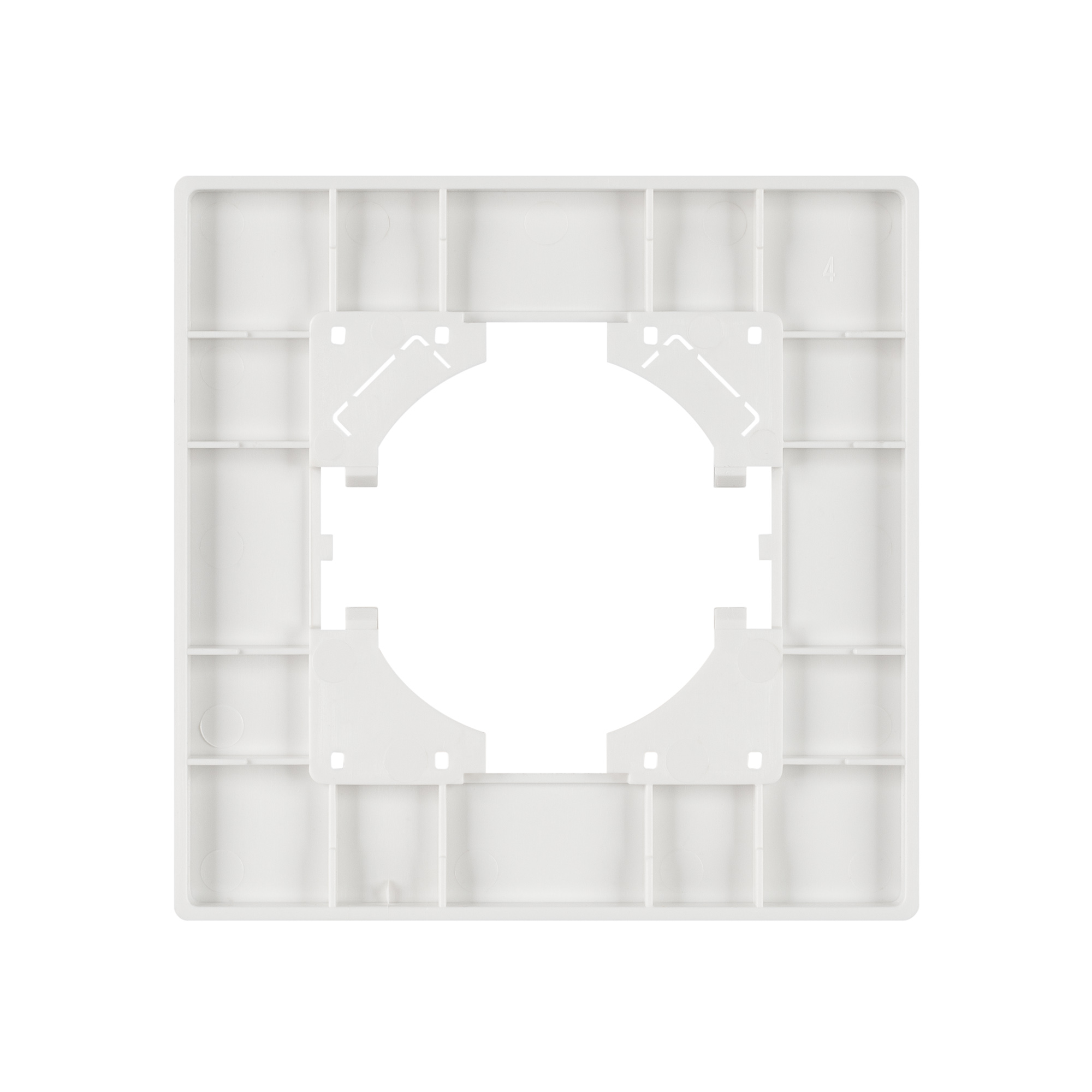 Рамка пластиковая на 1 пост, под встраиваемый механизм. Цвет - белый. Среднего уровня герметичности IP20. Ориентация монтажа - горизонтальная (основным ориентиром служат посадочные выступы для накладки механизма).