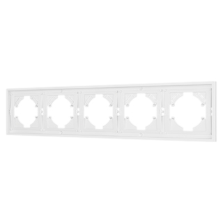 Рамка пластиковая на 5 постов, под встраиваемый механизм. Цвет - белый. Среднего уровня герметичности IP20. Ориентация монтажа горизонтальная.
