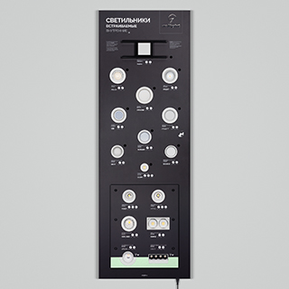 На стенде представлены самые ходовые модели даунлайтов серий FROST, CYCLONE, BREEZE, POLAR, DROP, LTD, BLIZZARD, MIST, EXPLORER, SIMPLE, ATLAS TRIMLESS, ORIENT BUILT TRIMLESS, GRIGLIATO, GLORY, FOGGY, ATOLL.