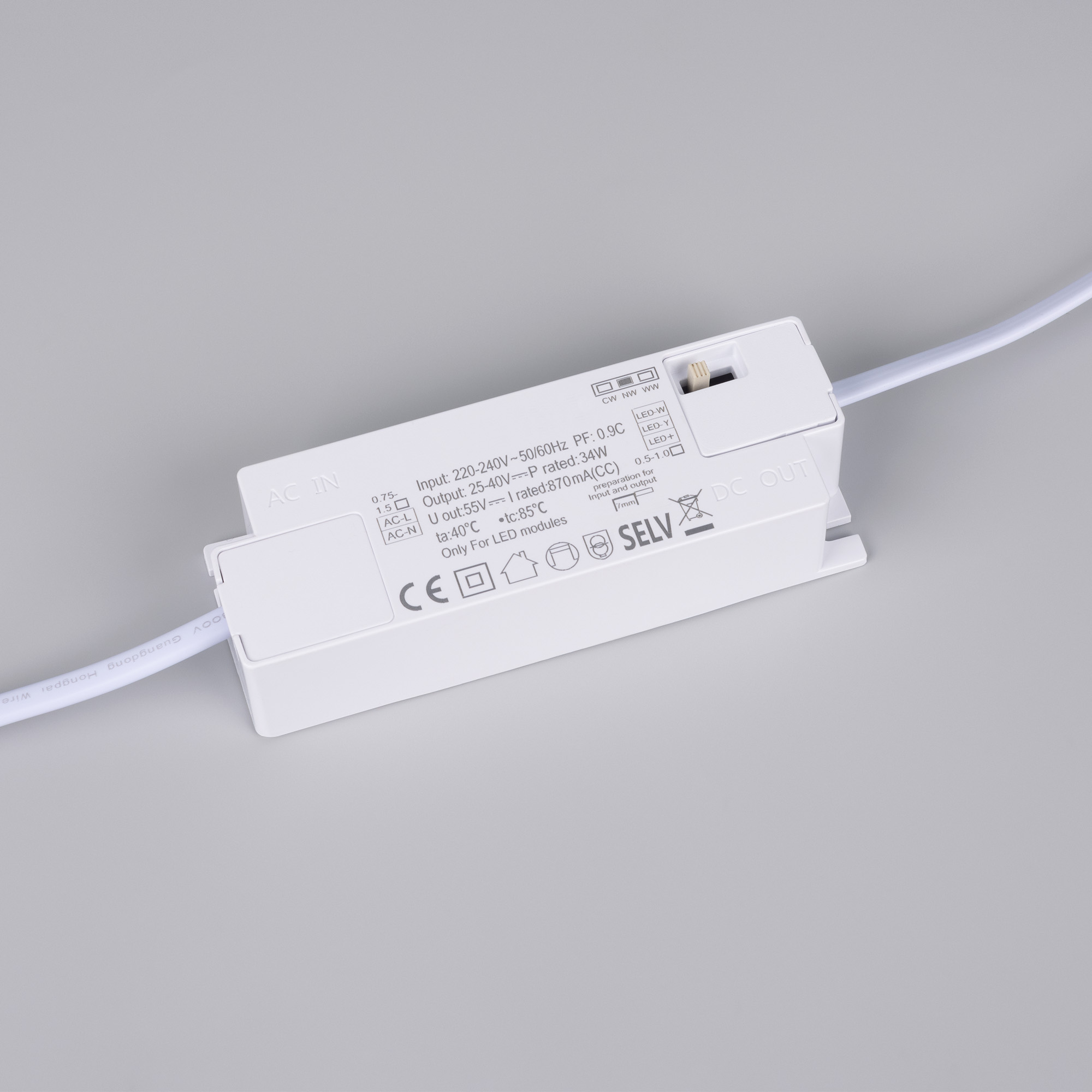 Светодиодная панель с прямой засветкой (backlit). Мощность 34 Вт, св. поток 4200 лм, 120-125 лм/Вт, с изменяемой цветовой температурой 3000K/4000К/6000K (встроенный переключатель), CRI>92, угол 120°, напряжение питания 230 В. Белый квадратный корпус из алюминия, экран PS, степень защиты IP40. Размер: длина 595 мм, ширина 595 мм, высота 32 мм. Монтаж встраиваемый, установочное отверстие длина 575 мм, ширина 575 мм. Драйвер 25-40 В, 870 мА, пульсация <1%.