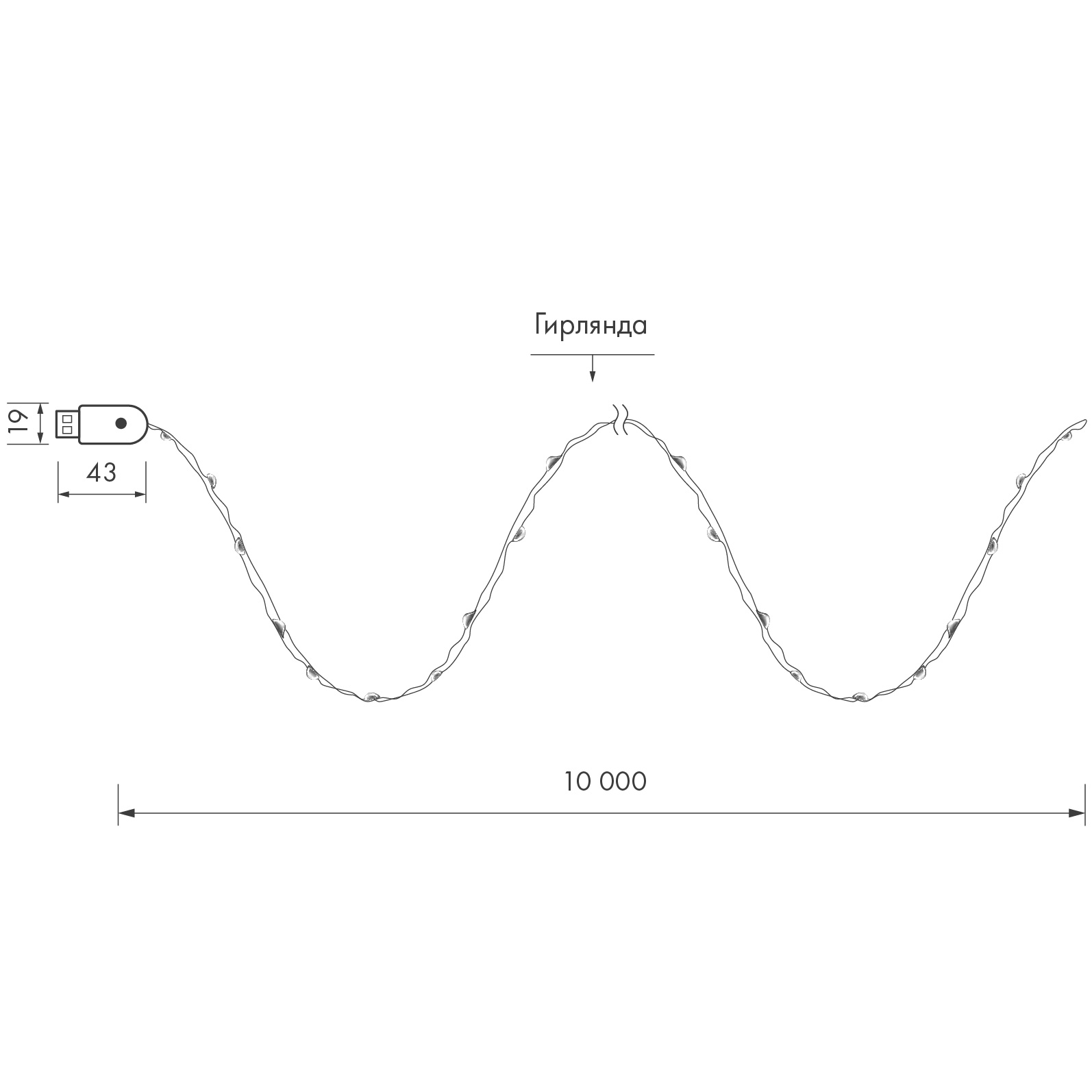 Светодиодная гирлянда РОСА (USB) серии HOME. Длина гирлянды 10 000 мм. Габариты USB разъёма 18x13x18 мм (ШxВxД). Цвет свечения ТЕПЛЫЙ БЕЛЫЙ (2400 К), 4 динамических и 1 статический эффект свечения. 100 светодиодов SMD 1608 размером 2.1 мм, в эпоксидной заливке в форме капли, со статическим эффектом свечения. Провод из эмалированной меди, диаметр 0.4 мм. Напряжение питания 5 В, мощность 0.7 Вт . Степень пылевлагозащиты IP20, применение в помещении. Изделие укомплектовано ПДУ с 13 кнопками для управления гирляндой, габариты 85x39x6 мм. Питание ПДУ 3VDC (CR2025).